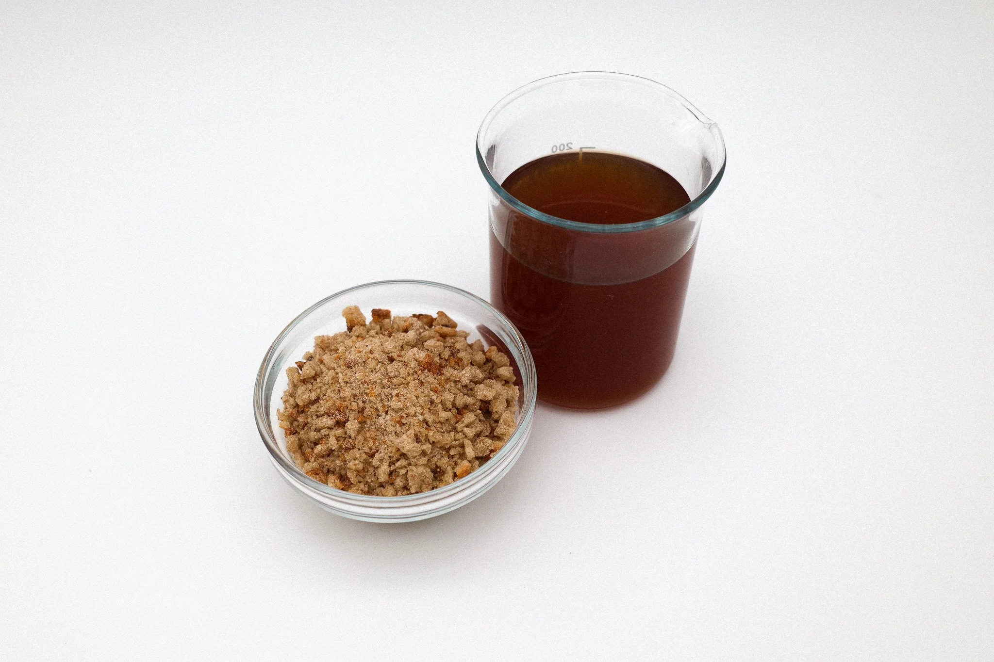 After extracting the syrup, a solid by-product of insoluble fibre and protein is left over, which can also be used as an upcycled ingredient, e.g. to make miso (recipe coming soon).