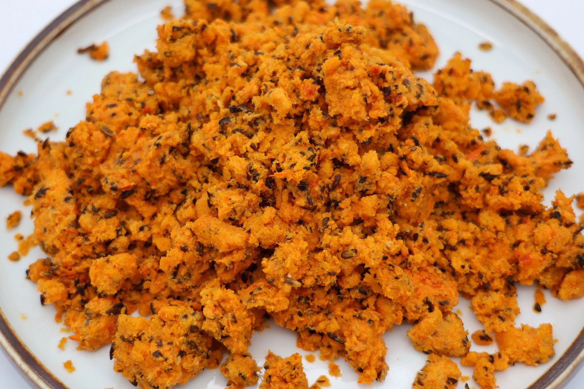 Fermented carrot juice presscake ‘mango’ (left) & hot sauce (right)
