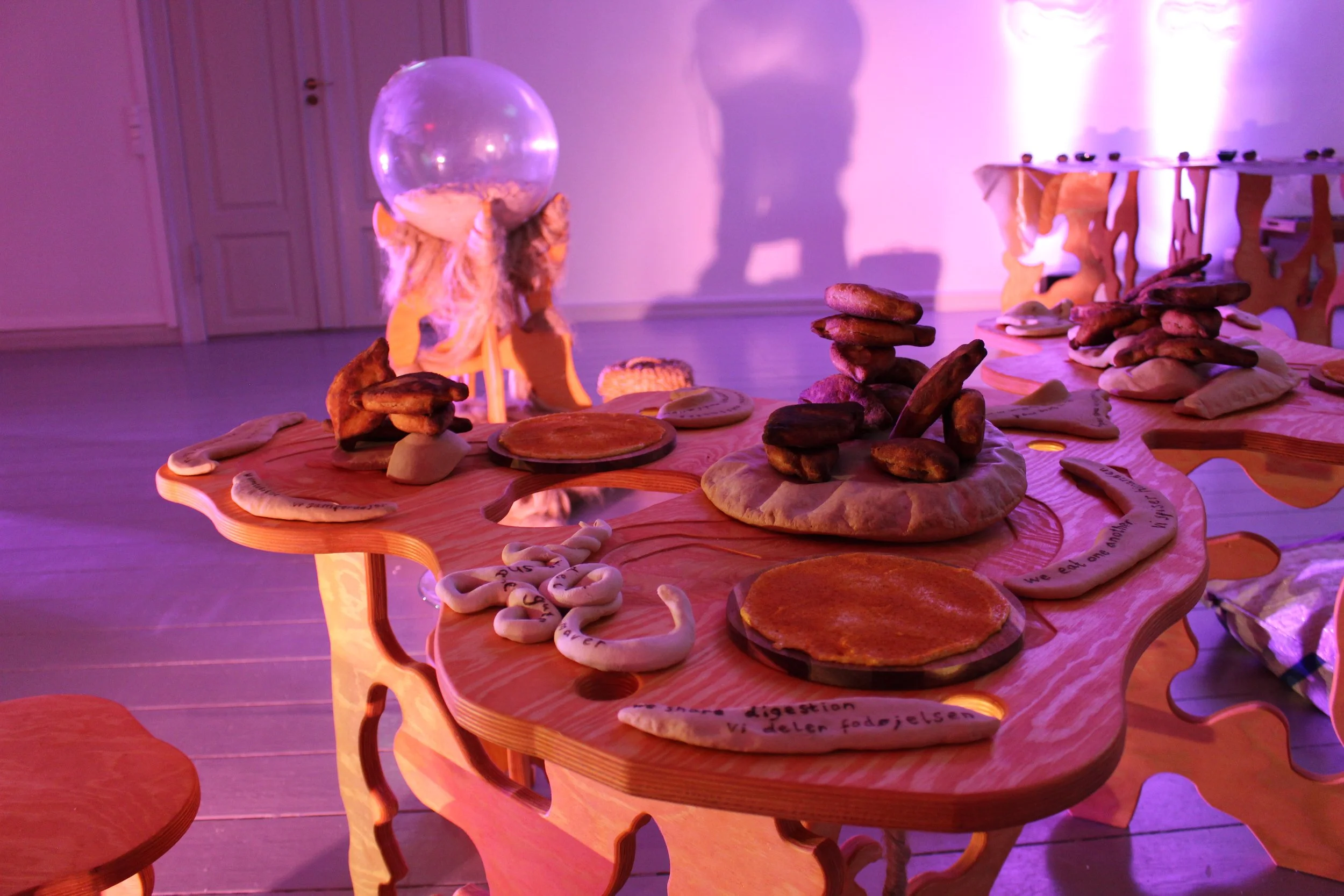 We joined this story in May 2022. A colleague—Joana Formosinho, then a PhD Fellow at the Medical Museion at the University of Copenhagen, doing research on the figure of the holobiont in the life sciences—reached out to me. She asked if we might want to be involved in ‘conjuring up a “holobiont dinner”’, likely involving fermented foods and some kind of meditation/playful experience for guests, inviting them to eat as holobionts. It would be led by artists Baum & Leahy, with whom Joana had already collaborated on a piece called ‘Co-metabolise’ for the Museion’s exhibition at Kunsthal Charlottenborg called The World Is In You in 2021-2022, and curated by Louise Whiteley, associate professor and curator at the Medical Museion and one of Joana’s supervisors. Louise also worked on Co-metabolise, along with Rob Dunn, professor of ecology whose lab has been doing some super interesting studies of the ecology, evolution, and biodiversity of fermented foods. The project would celebrate the end of ‘Microbes on the Mind’, a Velux-funded grant led by Louise, and would coincide with a three-day workshop gathering of the Nordic Network for the Social Study of Microbes, led by Salla Sariola at the University of Helsinki. They hoped the work would reach these different audiences—researchers studying microbes, food, and food systems across disciplines, artists thinking and working with microbes, food producers and fermenters, and other interested publics.