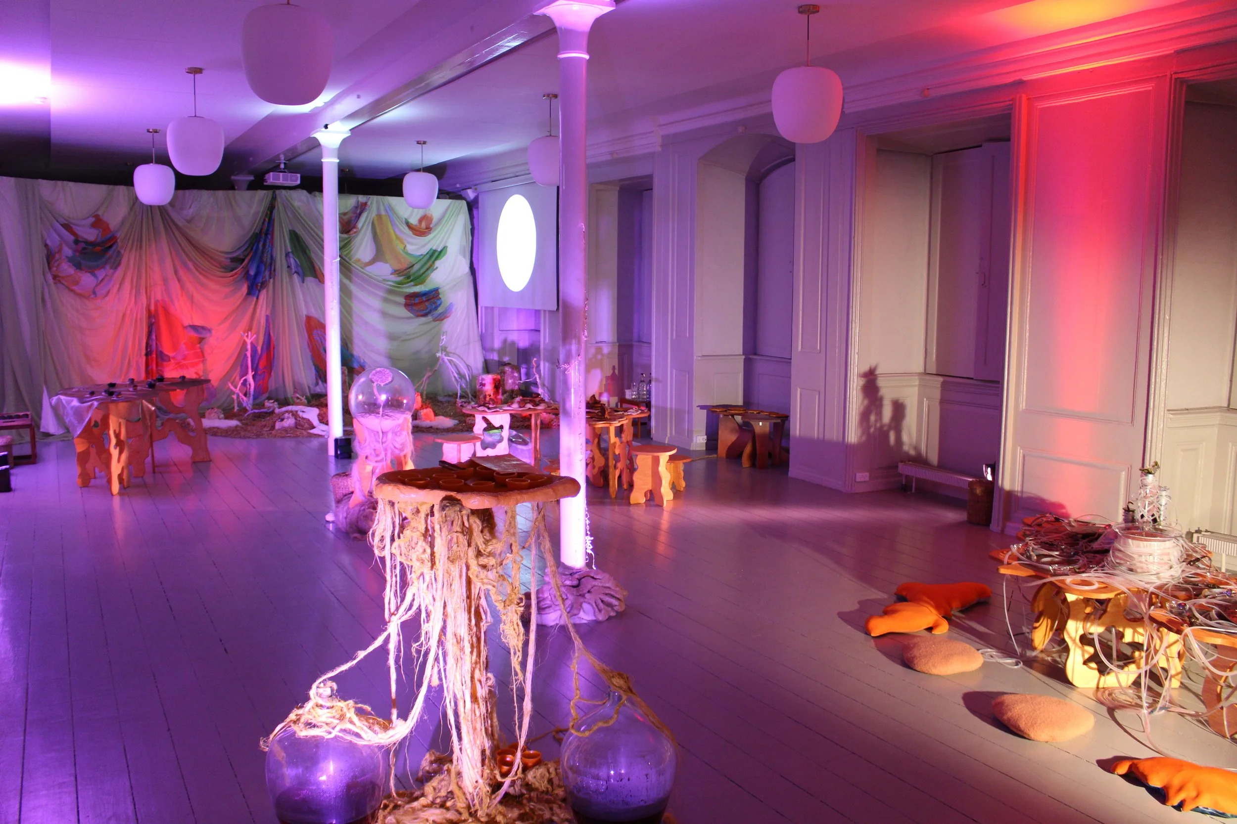 Once you are sated, your guide takes you all back into the anteroom where you began. Here, you recline together, listening to your own and each other’s guts with stethoscopes, connecting aurally to your microbial companions, listening in on the conversations happening with all the new signals shared throughout the different encounters, ecosystems recognising each other as ecosystems. Your guide invites you to reflect on what you experienced, to share how you felt, and if any of the encounters or rituals led you to relate differently to your body, your microbes, and/or each other.